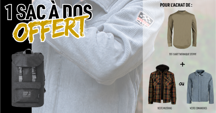 1 veste Mustang ou Comanches + 1 tee-shirt thermique acheté = 1 sac à dos OFFERT